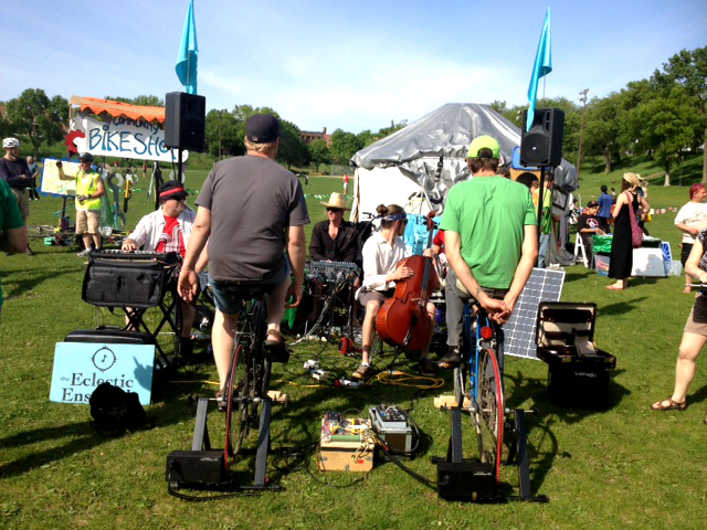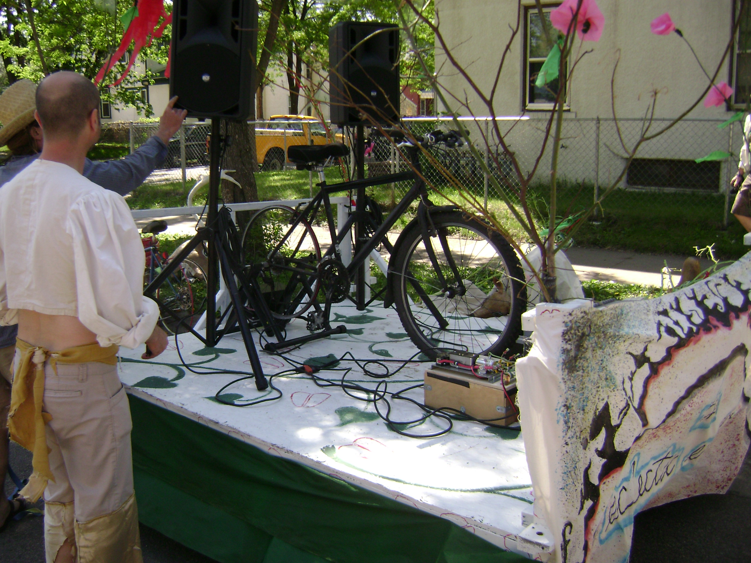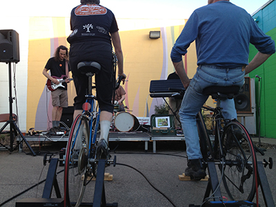 We have a bicycle driven power system that is capable of delivering 20 amps of pure sine wave AC power. Any Time of day or night, any location. Just add some creativity and amazing things are possible. Contact us to find out more